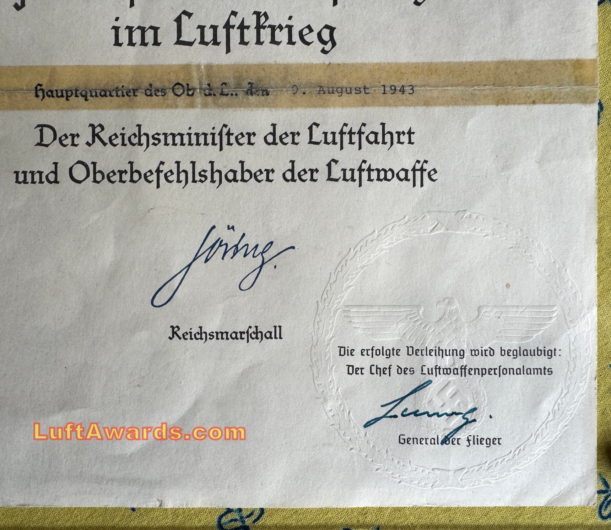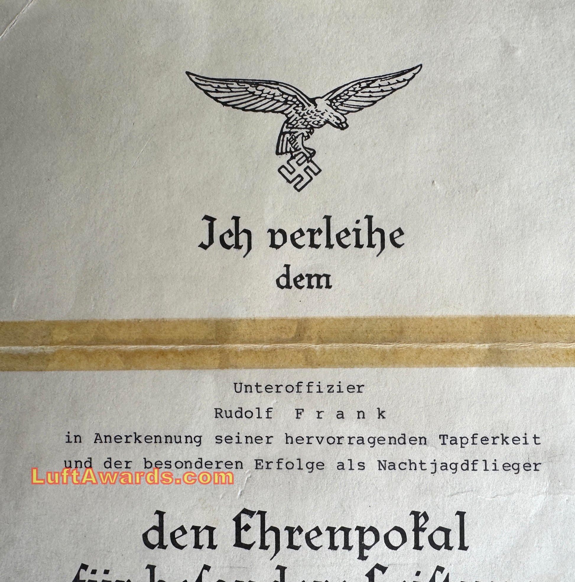 Z NFS Honor Goblet Document to RK with Oaks Winner Nachtjagdgeschwader CONTROVERSIAL